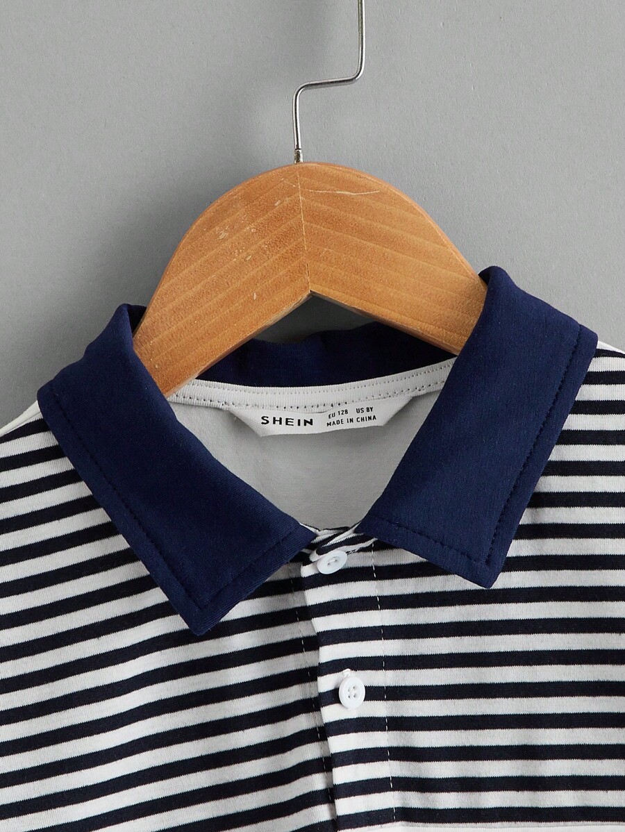 قميص برقبة مفتوحة ونصف أزرار لفتيان المراهقين مع لوحة مخططة وألوان متباينة