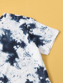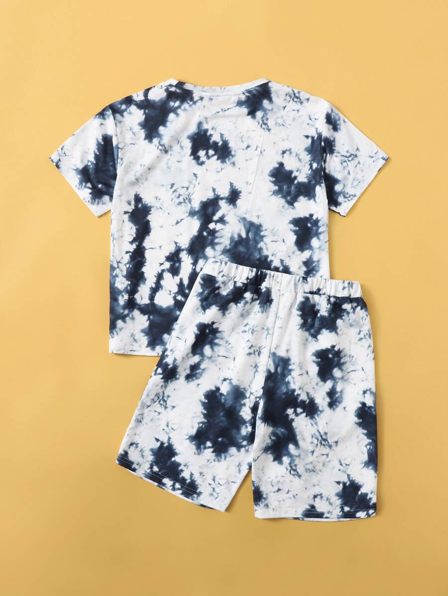 طقم سروال قصير بجيب مائل مع تي شيرت بصبغ متعادل للاولاد