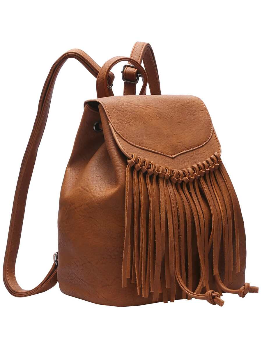 Brown Tassel PU Backpacks