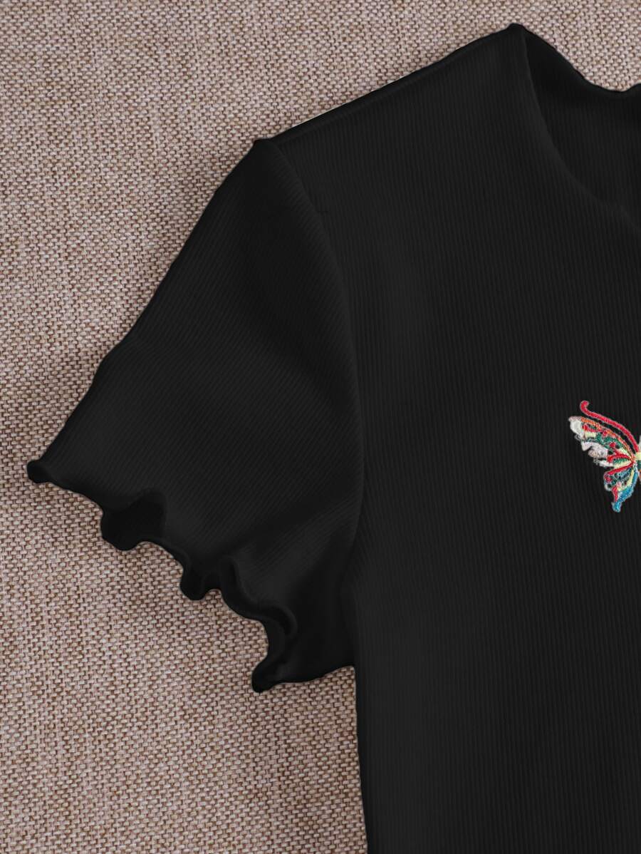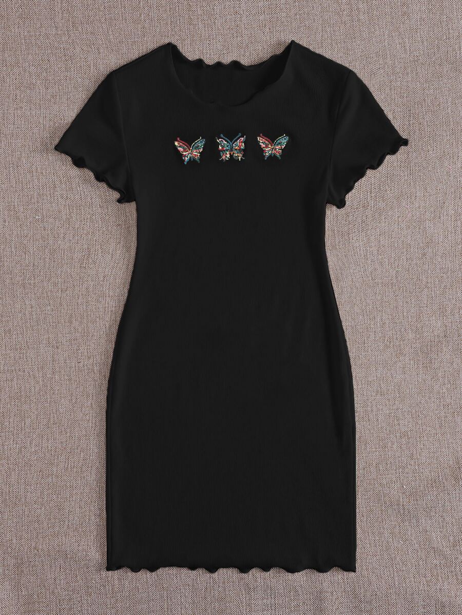 فستان ضيق محبوك بحواف خس ومطرز بفراشة
