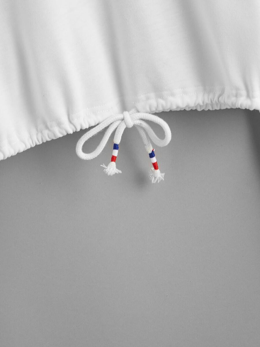 سويت شيرت قصير بحافة بأربطة وبطباعة فراشة