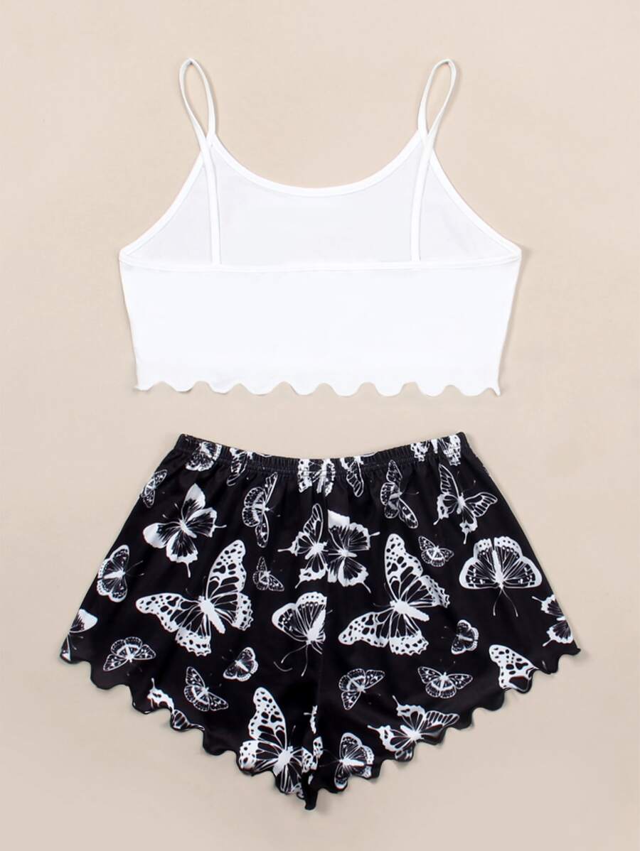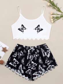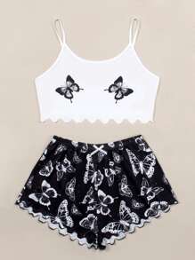 طقم بيجامة كامي مقلم نمط الخس بطباعة فراشة