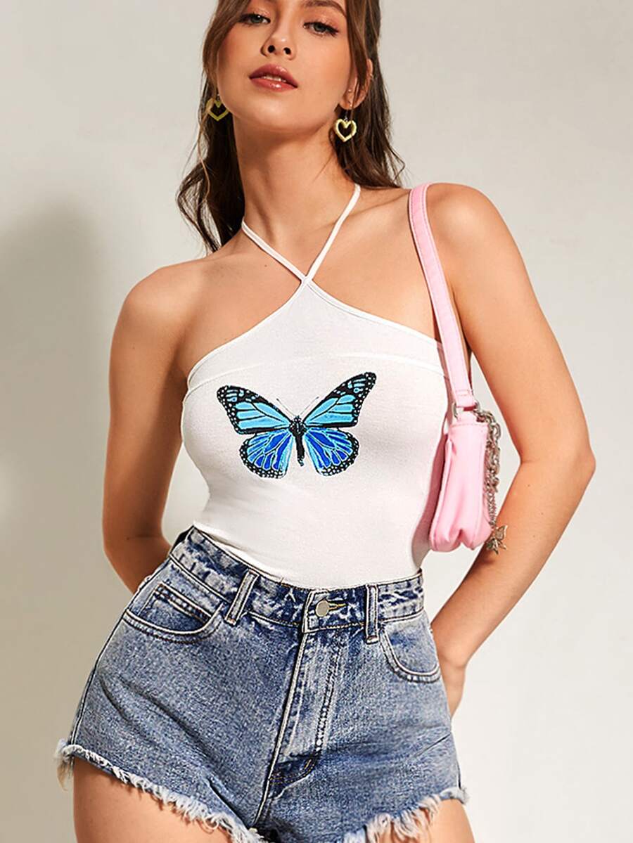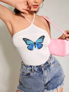 بدسويت برسن عنق بطباعة الفراشة مكشوف الظهر بربطة