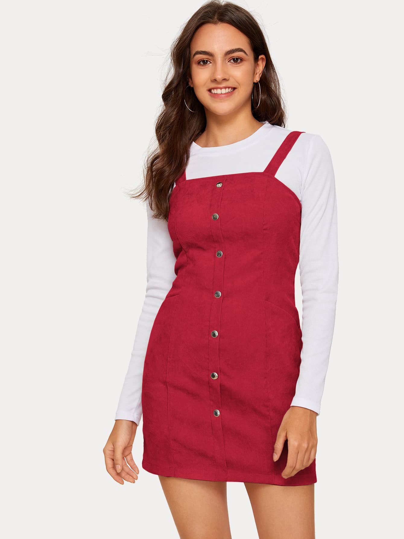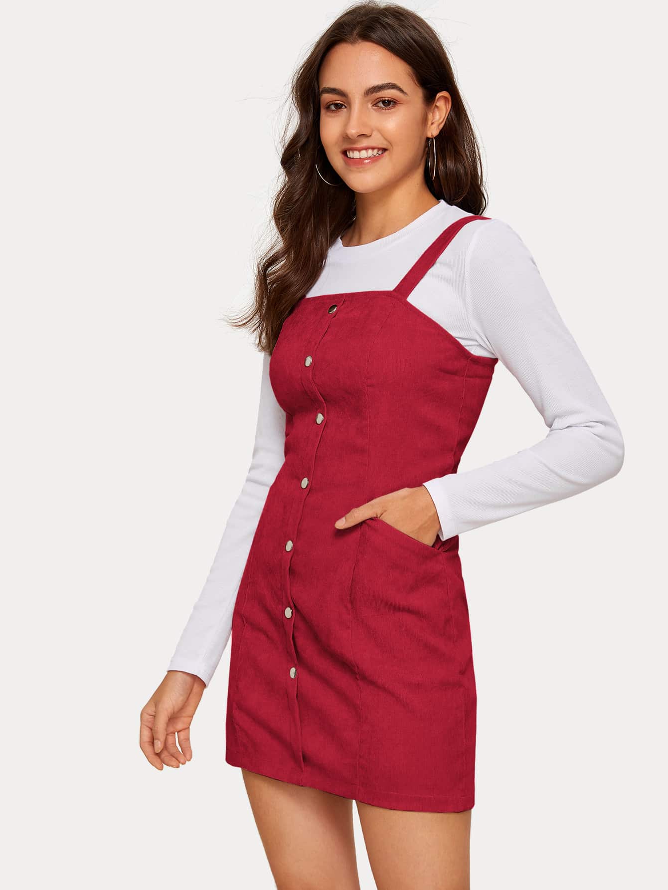 فستان بينفور قطني بجيب جانبي وبأزرار أمامية