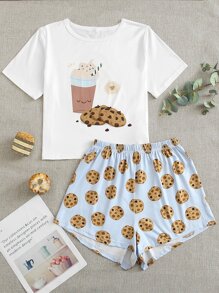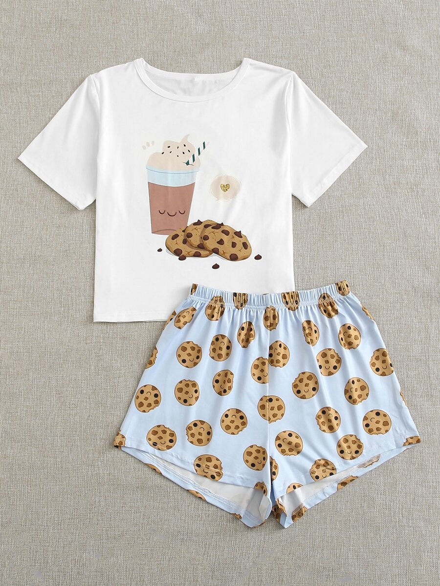 طقم بيجامة / بدلة النوم بطباعة البسكويت الكرتونية