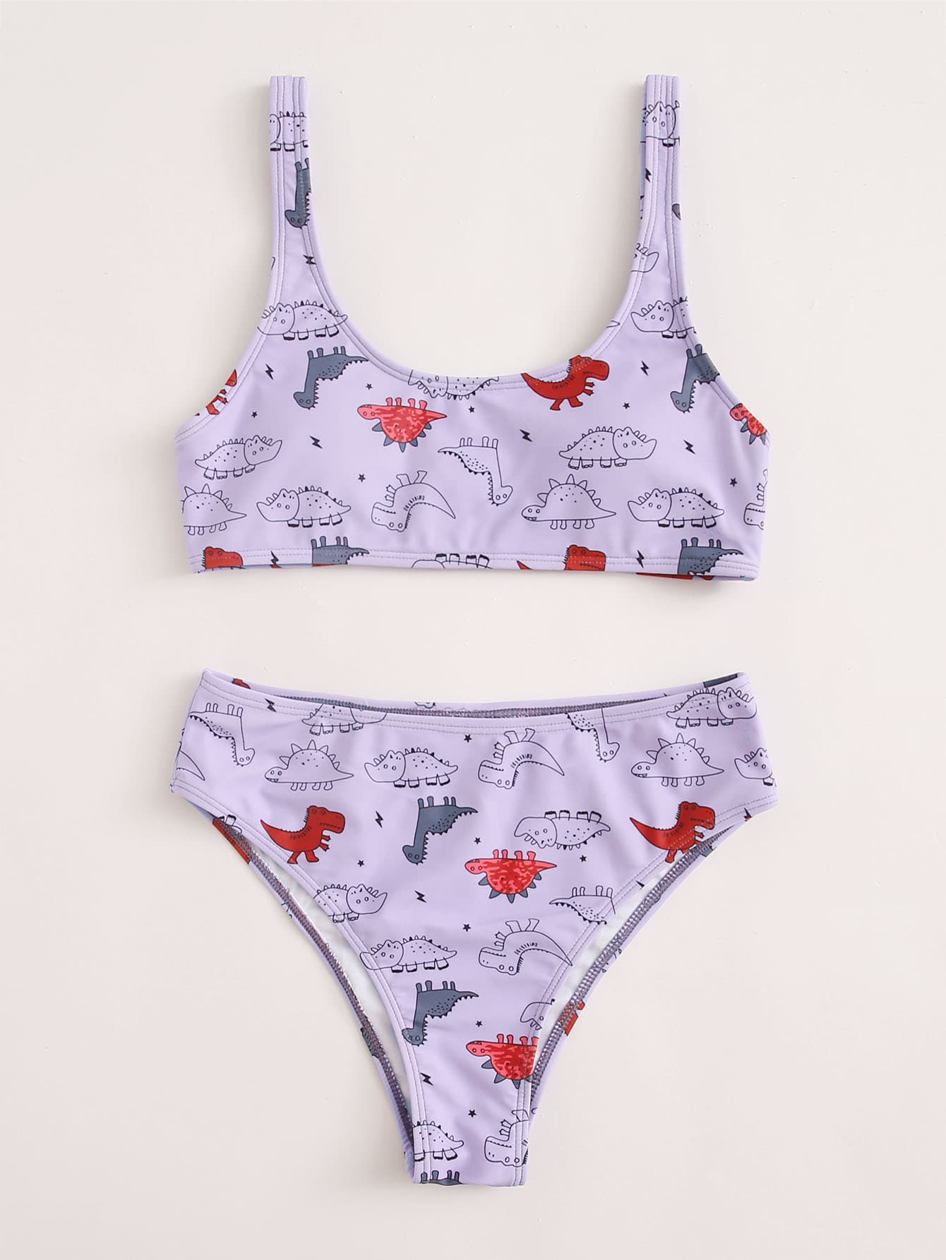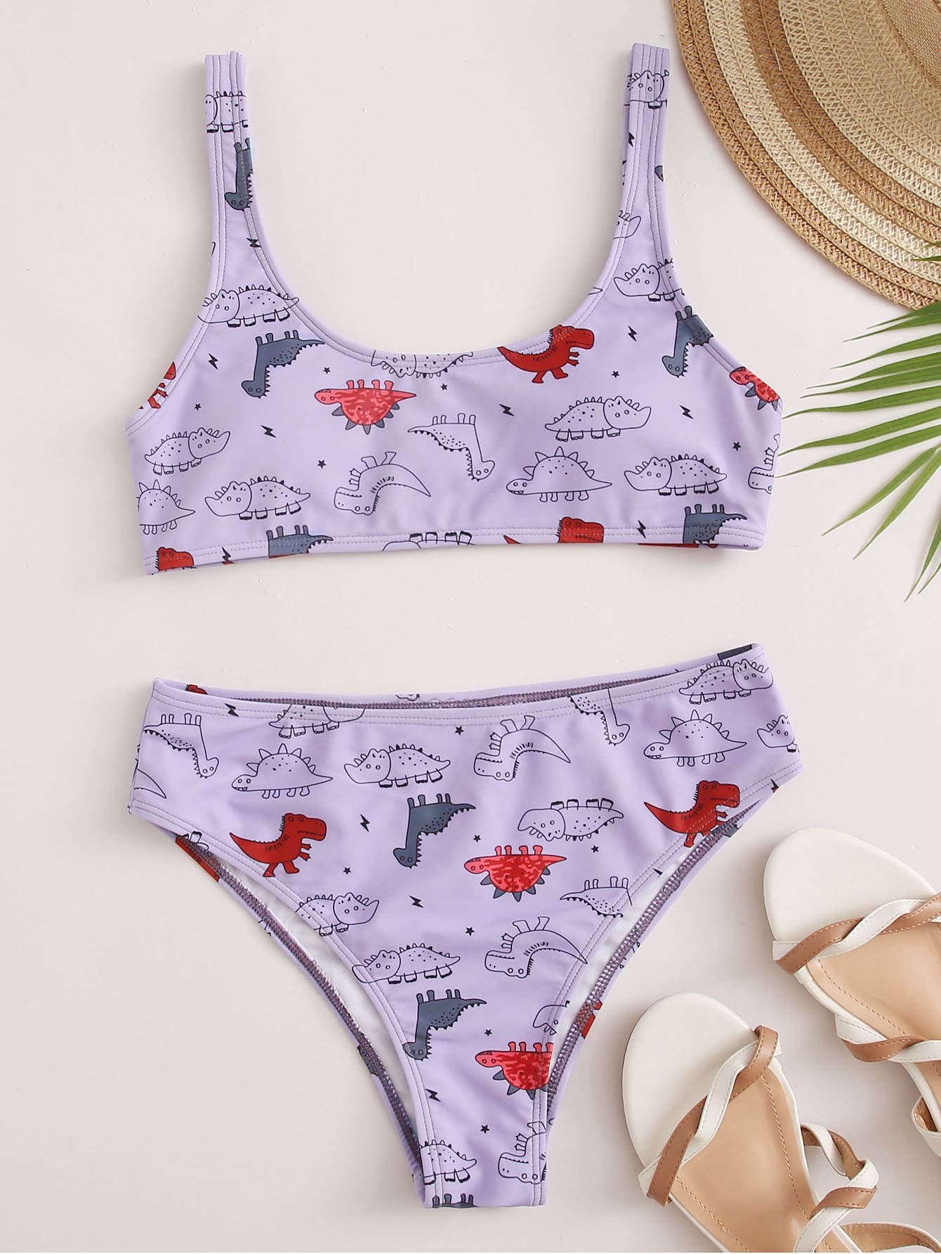 مجموعة بيكيني ديناصور كرتونية للصيف على الشاطئ