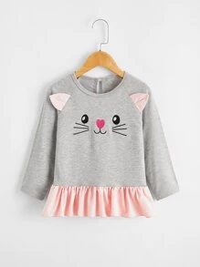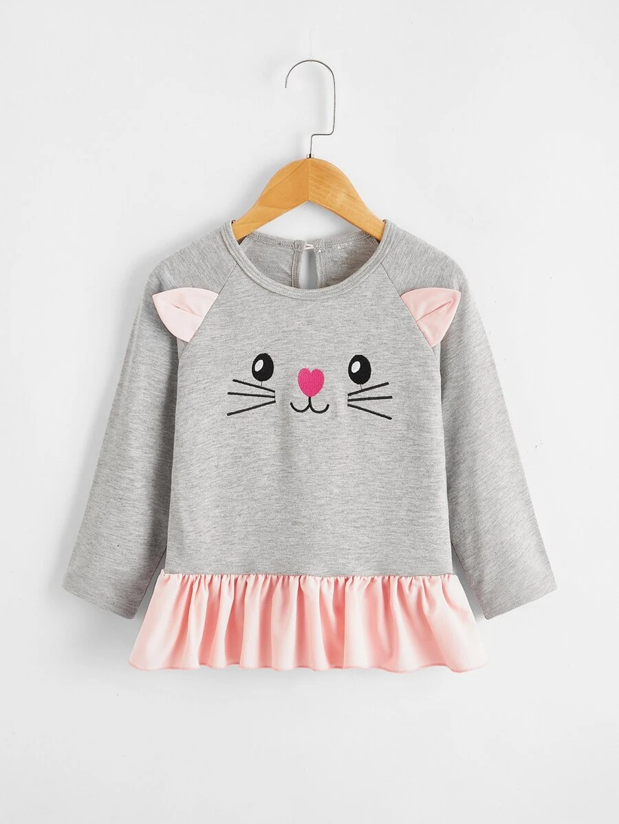 ملابس علوية للأطفال بنات التطريز تصميم الكرتون كاجوال