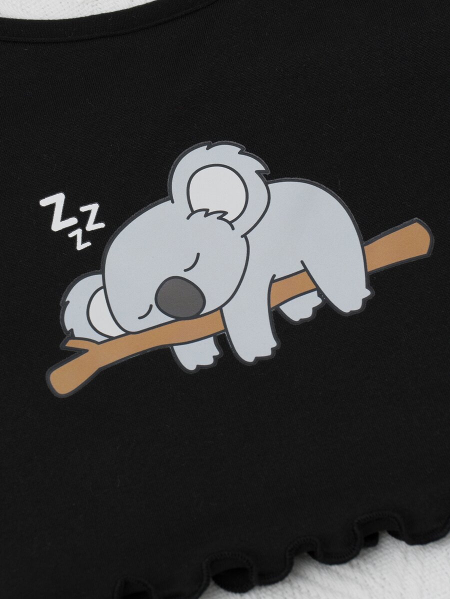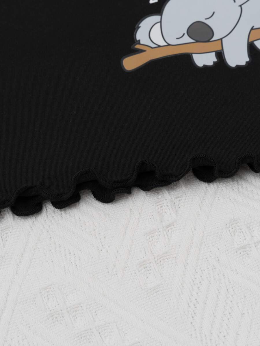 طقم بيجامة بقوس وبجرافيك رسوم كارتون