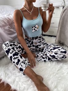 طقم بيجامة بجرافيك عبارة ورسوم كارتون