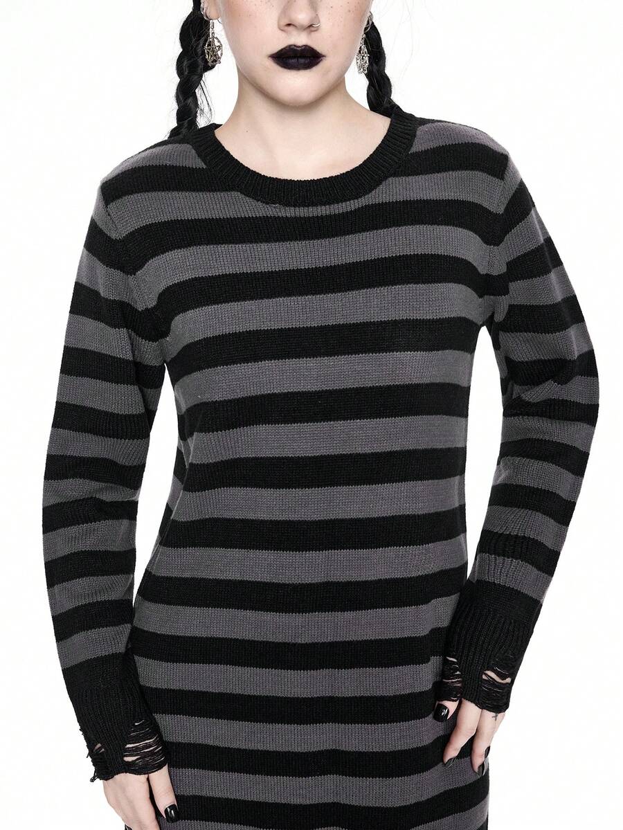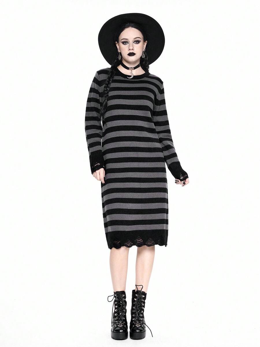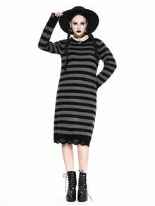 Goth فستان محبوك بتصميم ألوان متباينة وتطريز دانتيل، خريف/شتاء