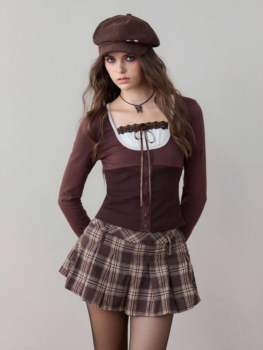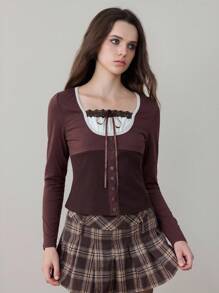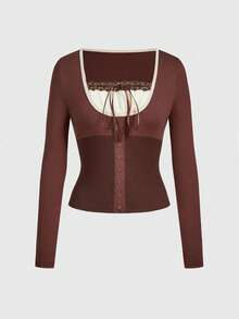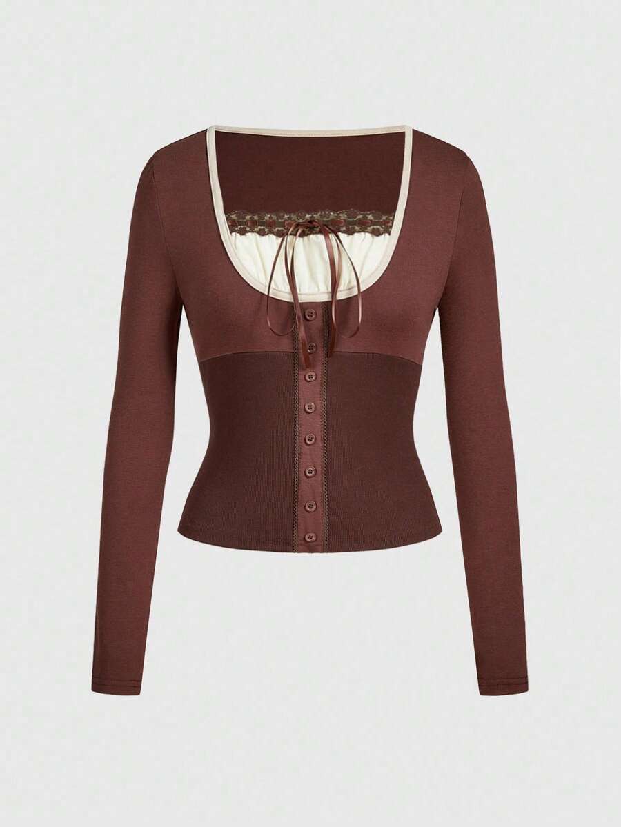 ROMWE Avant قميص نسائي كاجوال طويل الأكمام مزين بشريط متعدد الاستخدامات