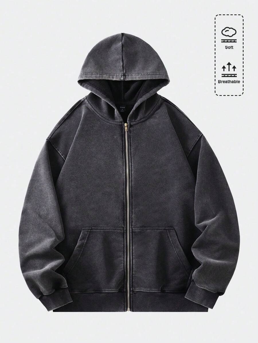 هودي مغسول بسحاب للشارع الكاجوال للمراهقين الذكور، خريف