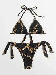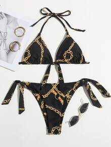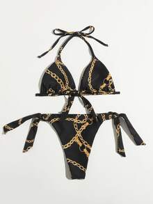 مجموعة بيكيني عقدة بطبعة سلسلة لصيف الشاطئ