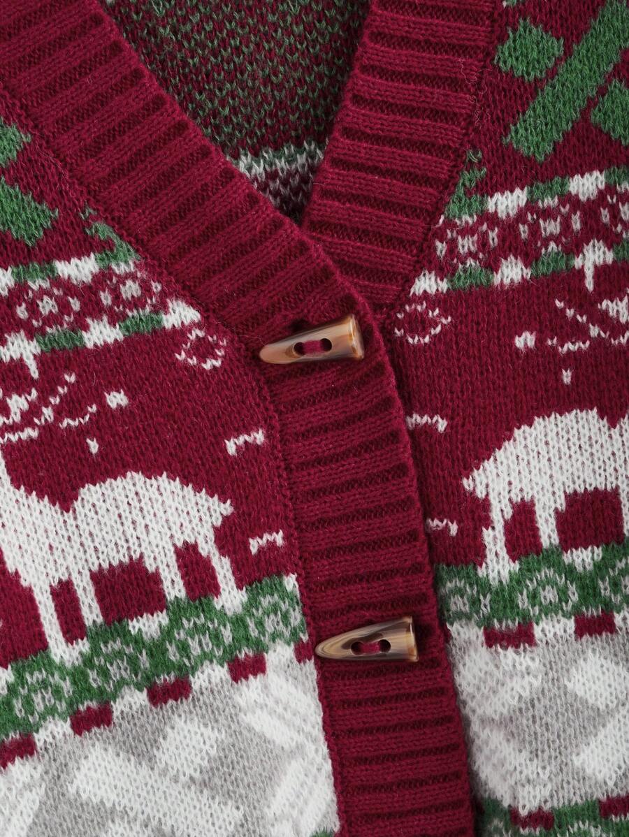 كارديجان مخملي دافئ للنساء بتصميم شجرة والغزلان الحمراء، للخريف/الشتاء