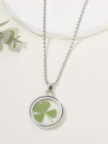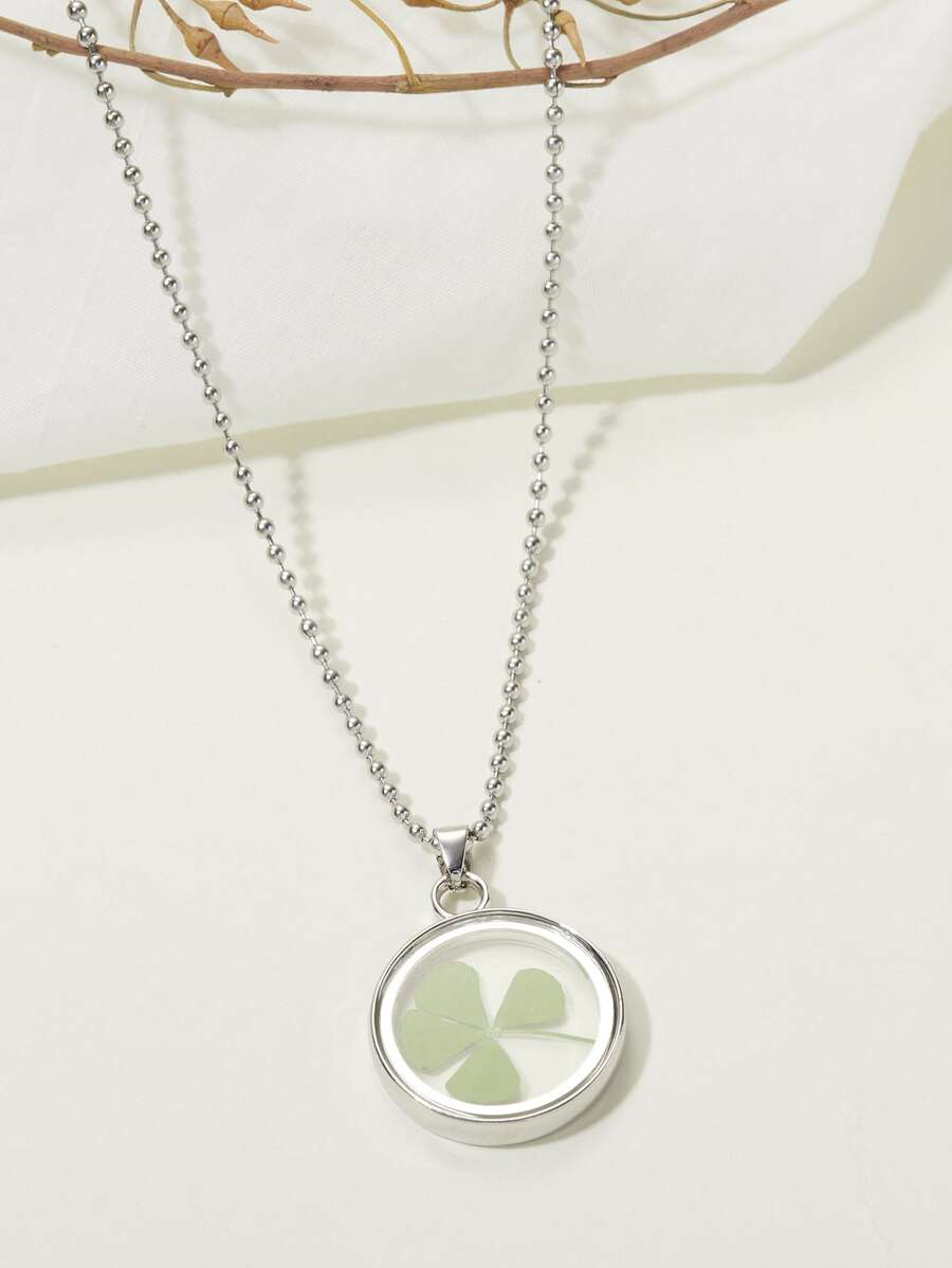 قلادة بتعليقة دائري بتفاصيل زهرة البرسيم