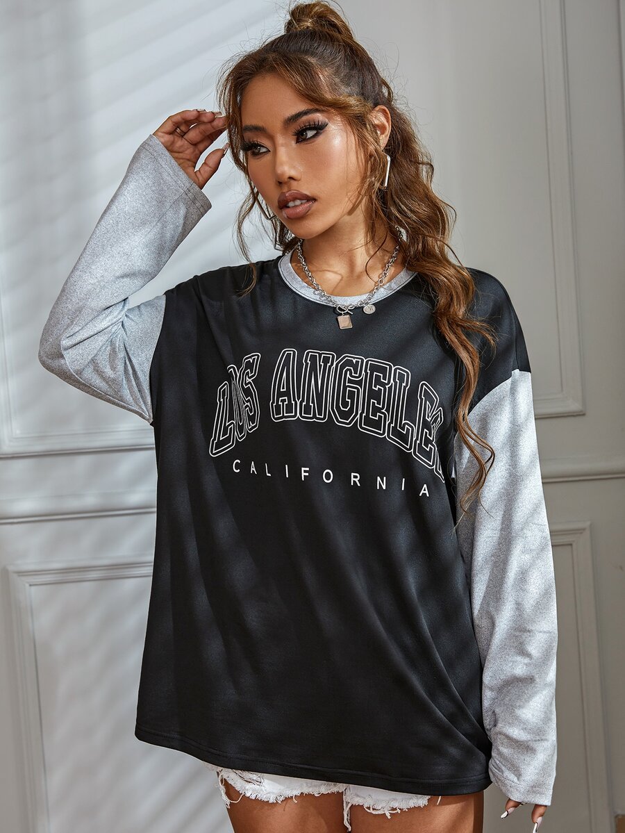 تي شيرت ألوان متجانسة بطباعة أحرف