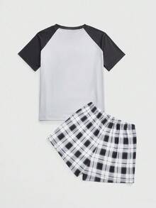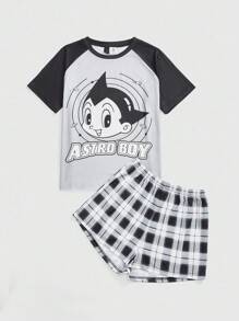 Astro Boy X ROMWE طقم بيجاما كاجوال يتكون من ملابس علوية بأكمام قصيرة بطبعات كرتونية ملونة وشورت مربعات