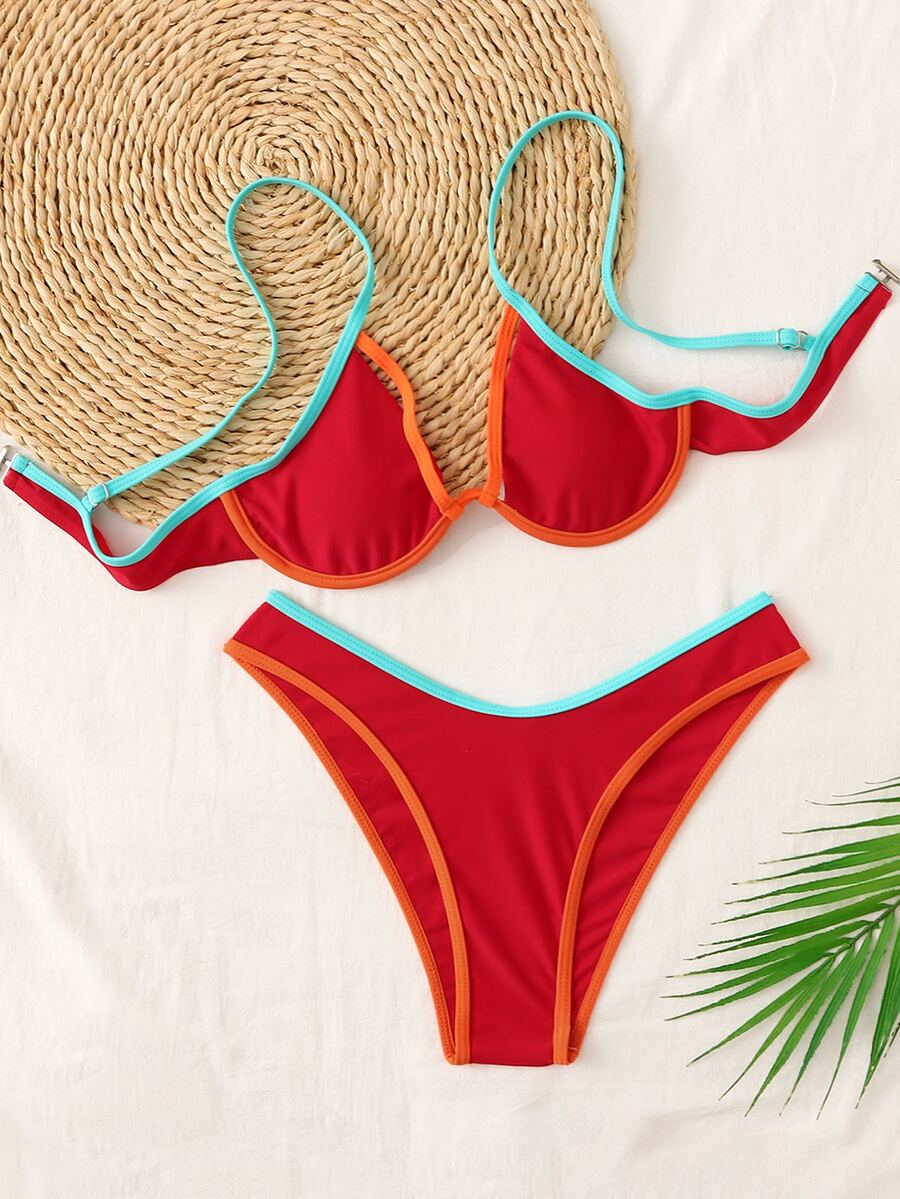 مجموعة بيكيني صيفية بتصميم مثير ومرتفع مع تفصيلة عالية ودعم للصدر