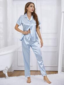 طقم بيجامة بنطلون مع بلوزة ساتان مقلم بشريط متباين