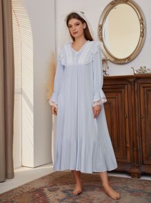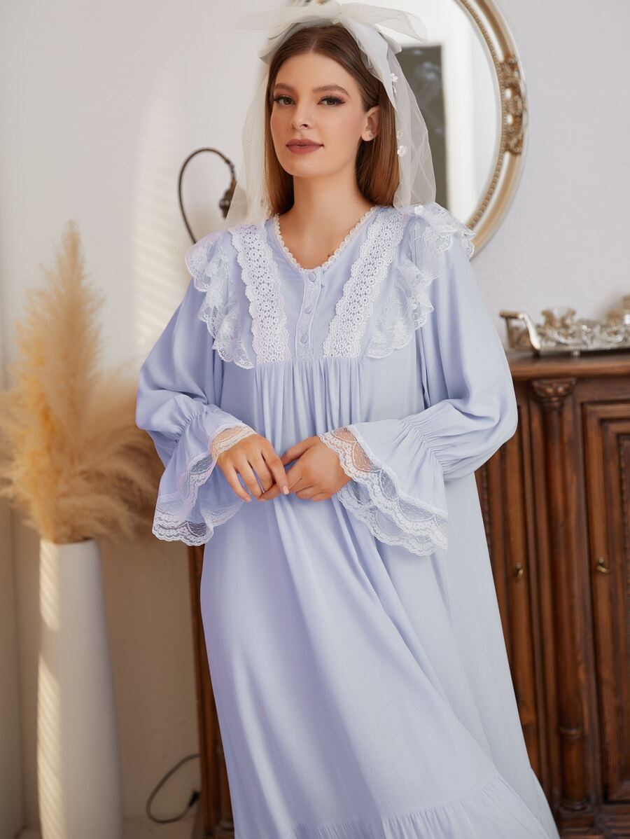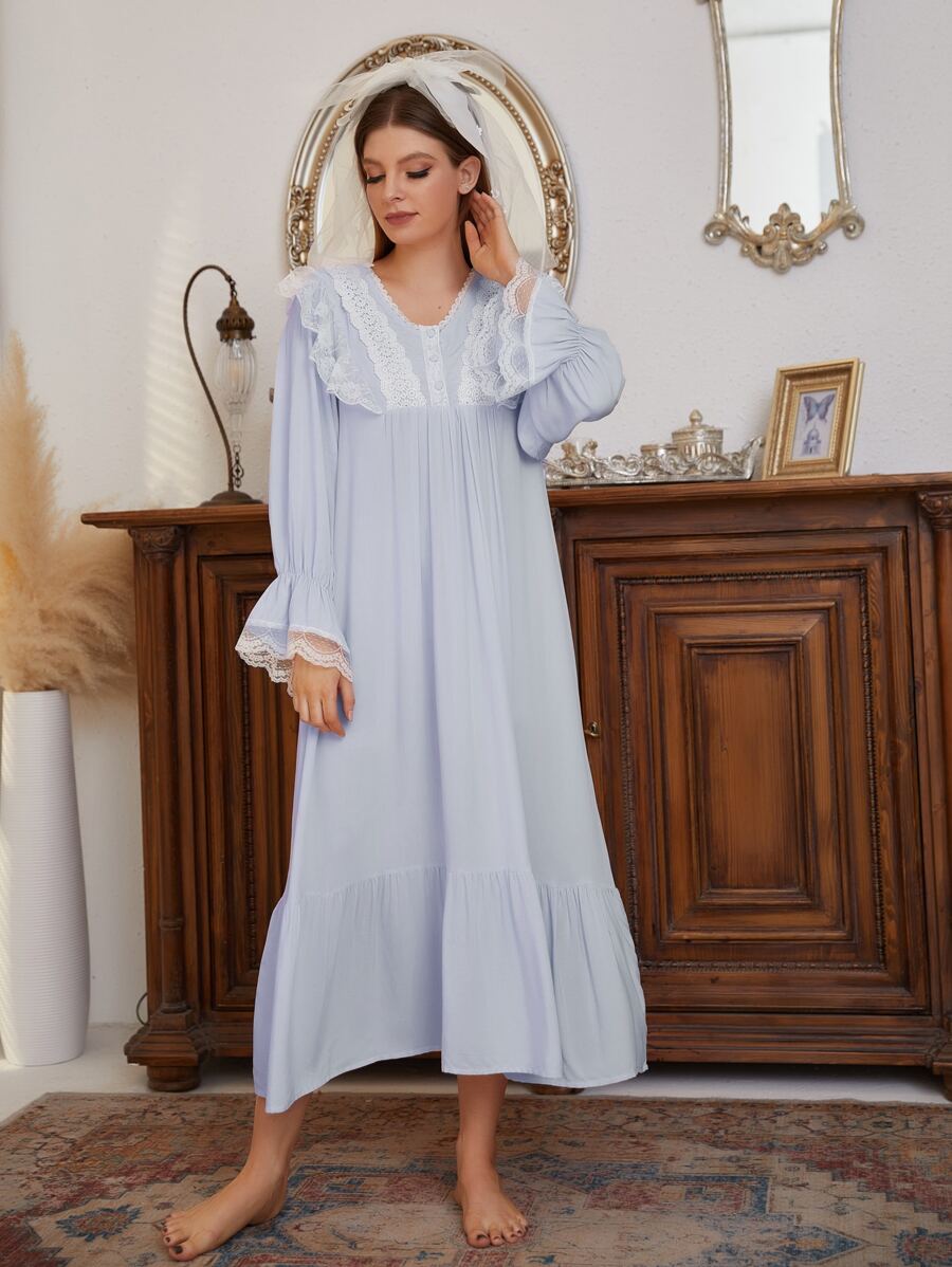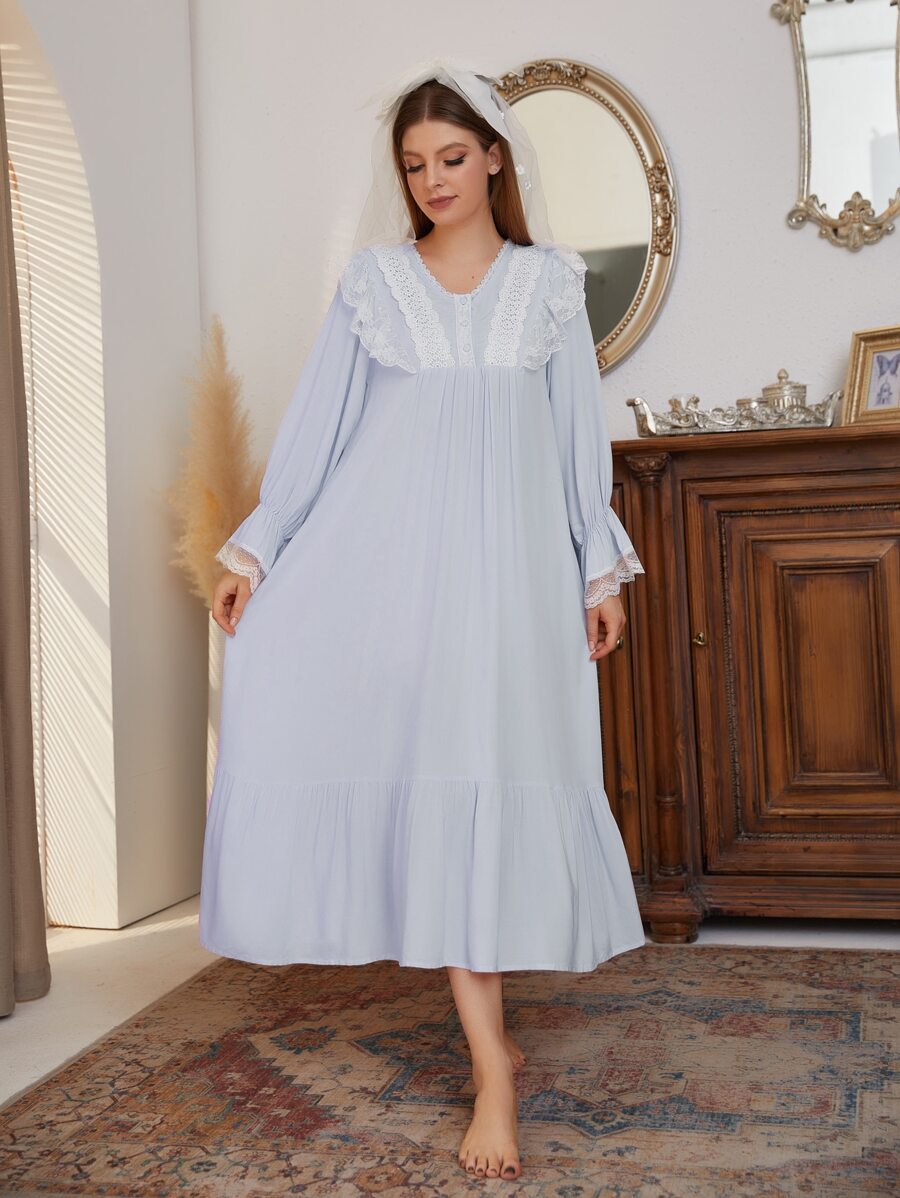 فستان نوم طويل بكشكشة الذيل وأكمام حجاب الدانتيل