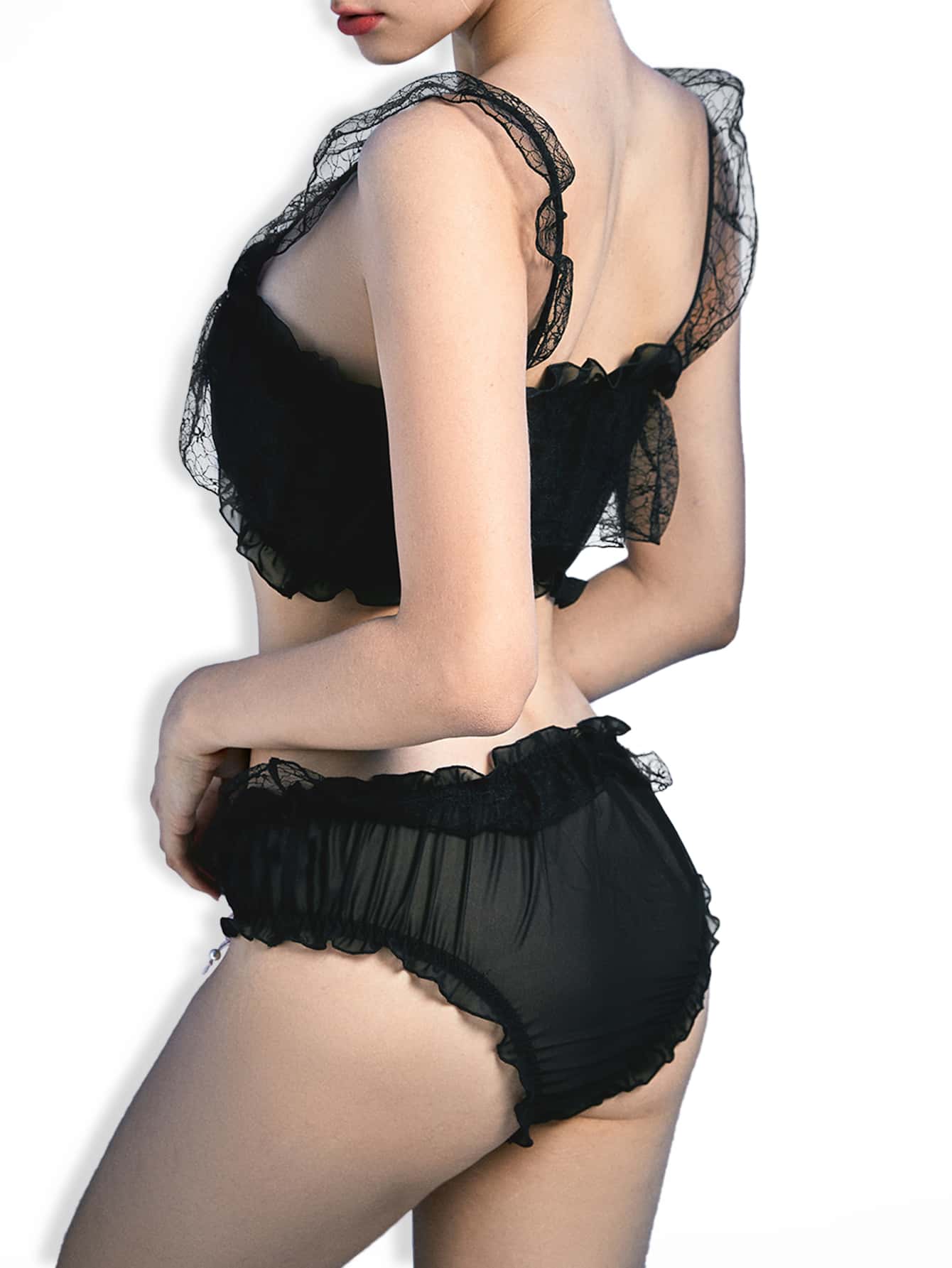 طقم ملابس داخلية دانتيل متباين اللون مزخرفة مزخرف بعقدة الفراشة