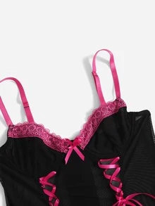 ملابس داخلية خط طويل دانتيل متباين اللون