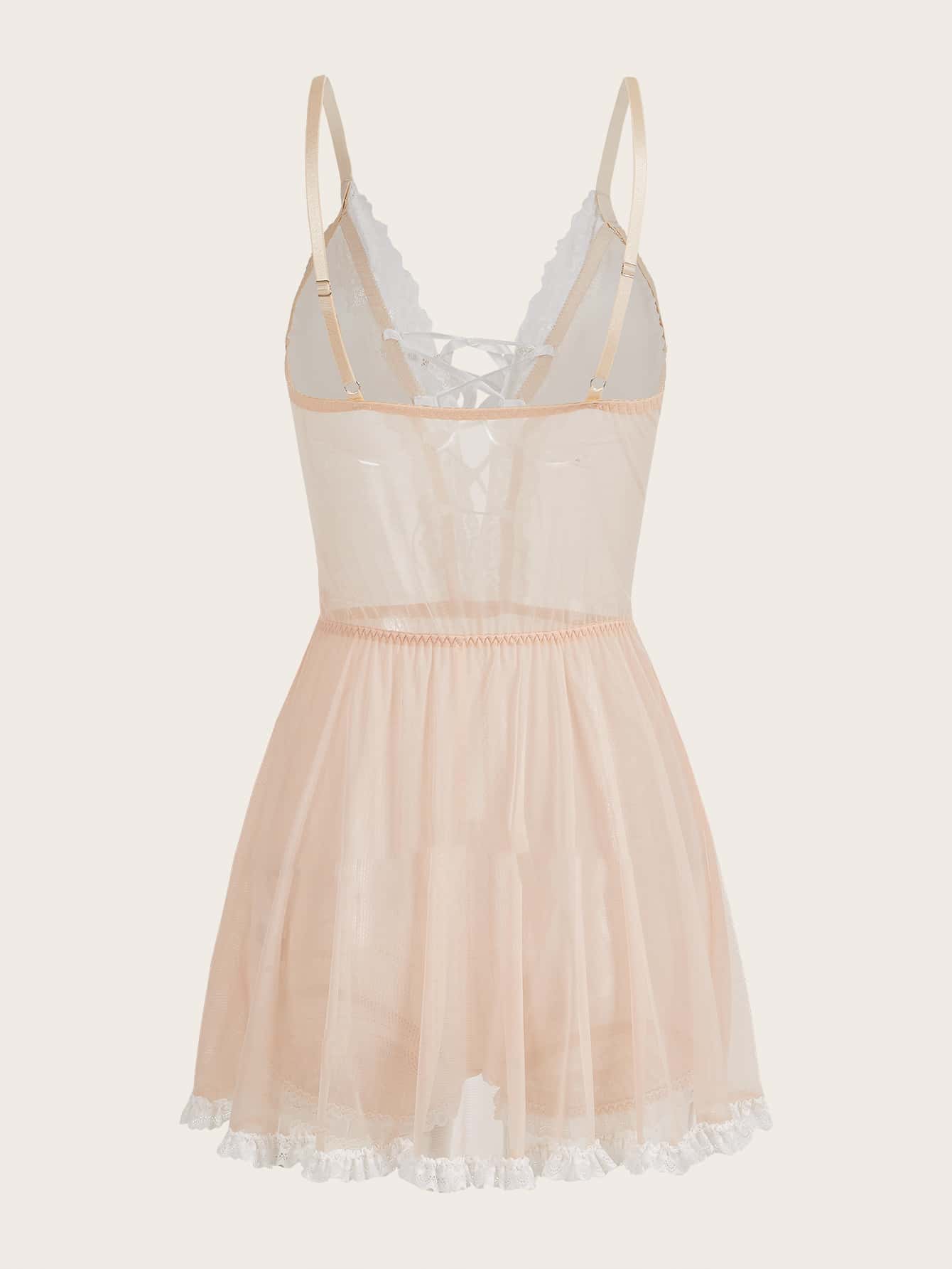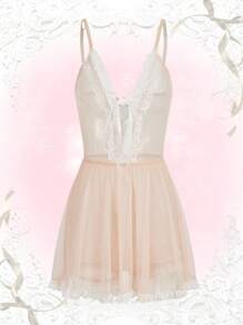 دانتيل متباين اللون شبكة فستان النوم الجنسي