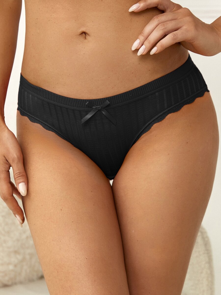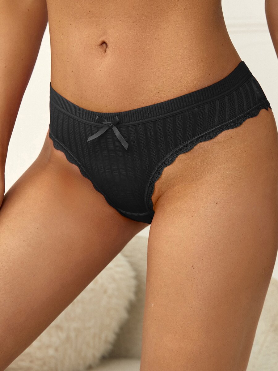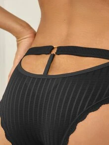 سروال داخلي دانتيل متباين اللون الحلقة مرتبطة قص مجوف