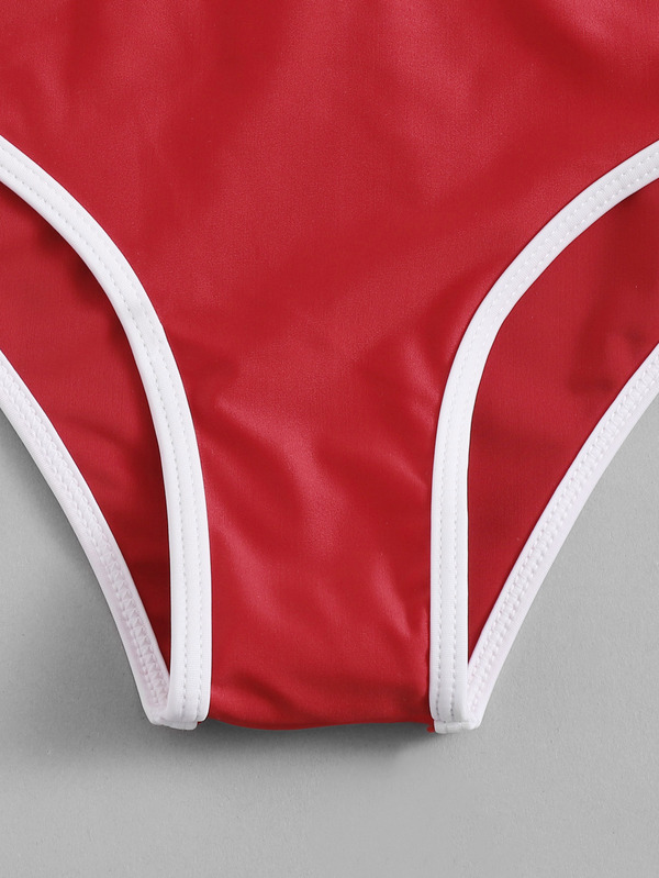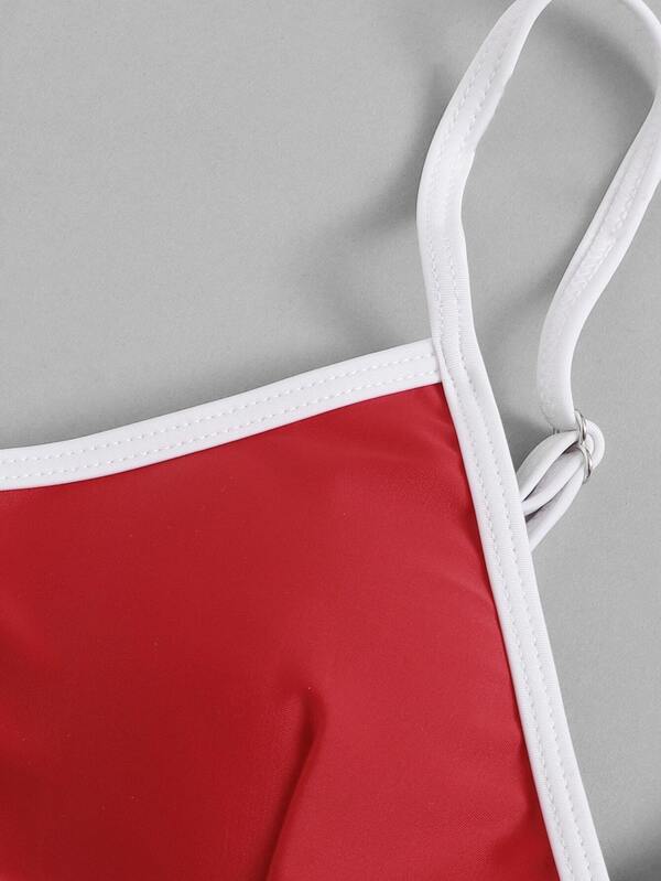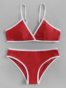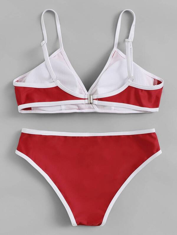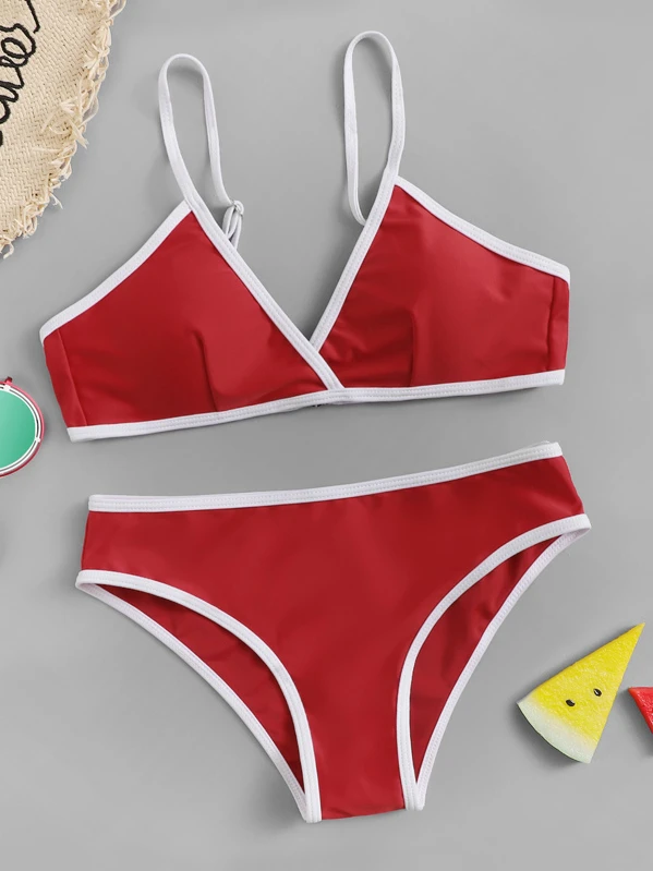طقم بكيني بعنق شكل V عميق ومحكم الحواف متباين