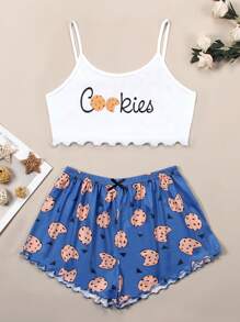 طقم بيجامة / مجموعة بيجاما بتصميم الحروف والأشكال الهندسية مع تريم الخس
