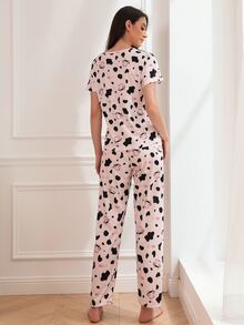 طقم بيجامة بجرافيك بقرة وحروف مع غطاء عين