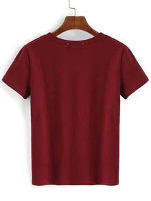 تي شيرت عنابي دائري الياقة كم قصير