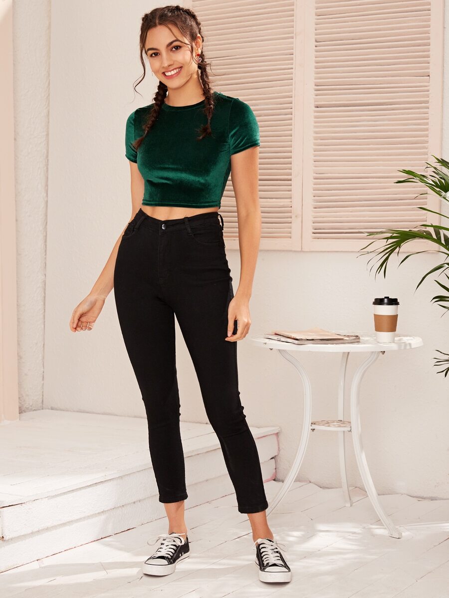 لباس علوي نمط المحاصيل مخملي وبياقة مستدير