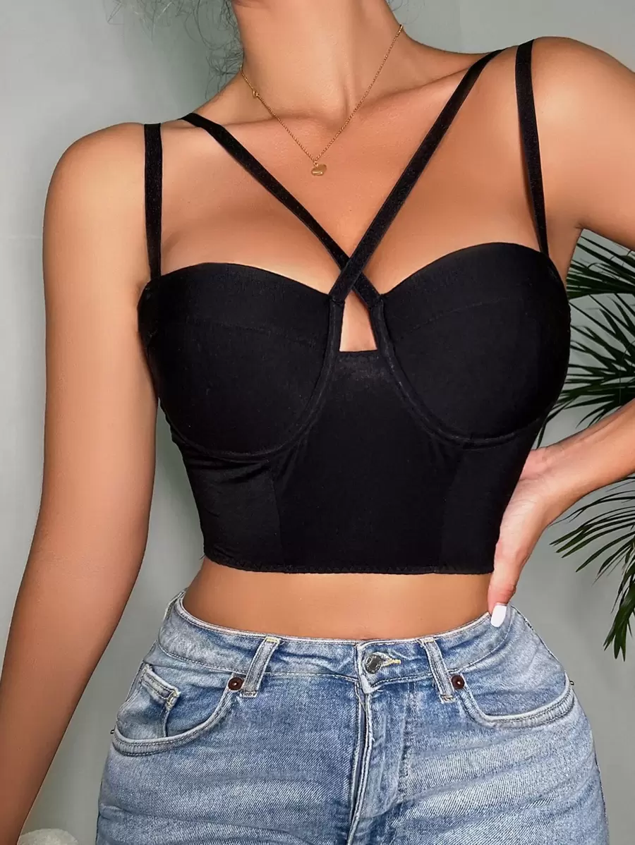 حمالة صدر متقاطع أمامي بدانتيل متباين وسلك تحتي