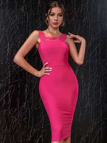 فستان الحفلة الضيق كوكتيل قص مجوف مكشوف الظهر سحاب خلفي منتصف