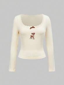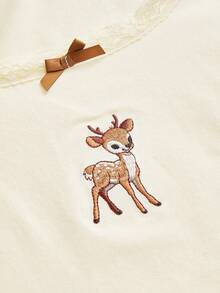 J-Fashion قميص أنيق مطرز بالدانتيل مع غزال مطبوع على بنطلون واسع، خريف/شتاء