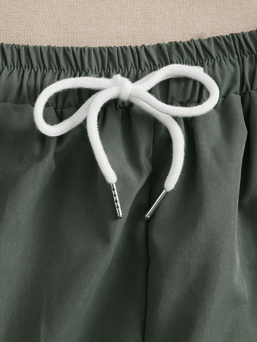 سروال رياضي بأربطة خصر مع تي شيرت بطباعة زهر وعبارة