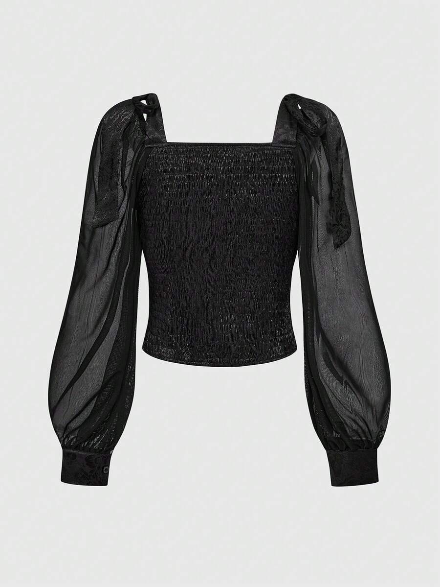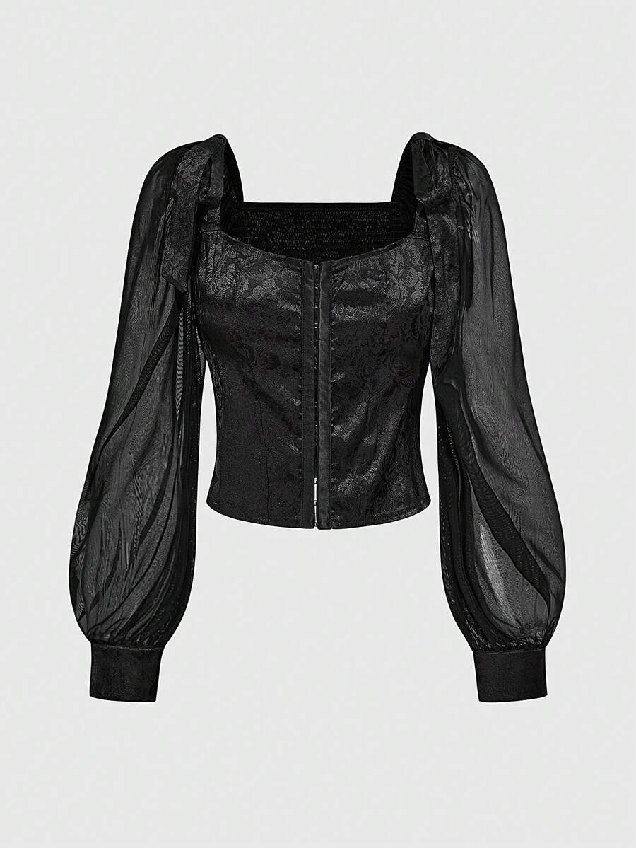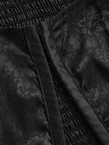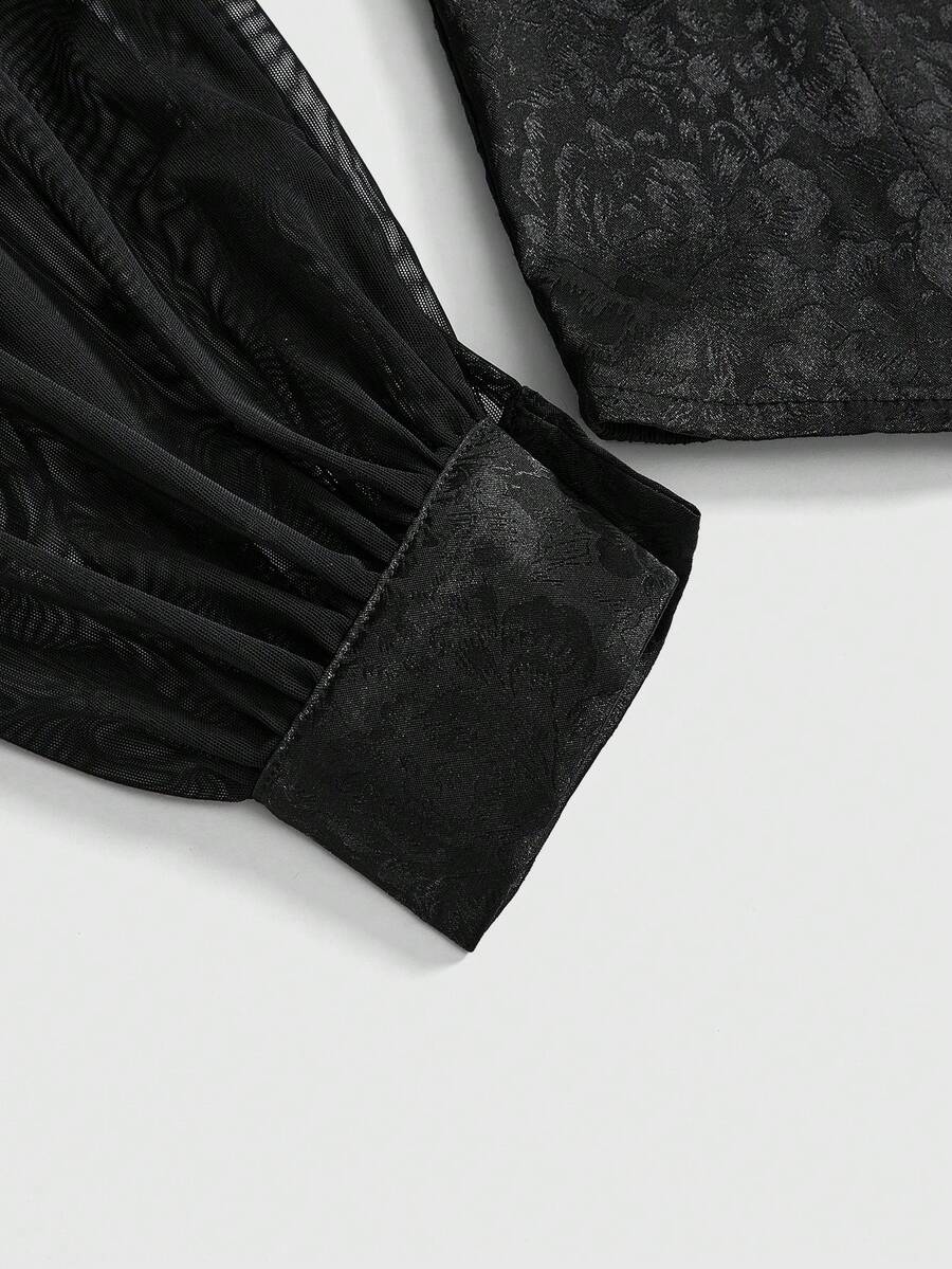 Goth قميص سيدات ذو أكمام بنفحة ذو فيونكة من نسيج الجاكارد ذو الورد الغوطي الداكن
