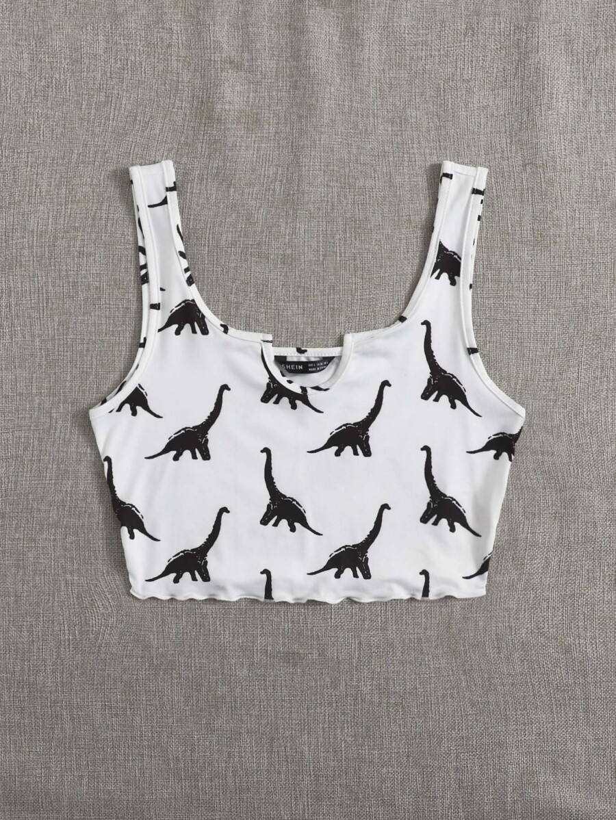لباس علوي تانك بحافة نمط الخس وبياقة مسنن