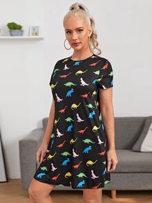 فستان تي شيرت بطباعة ديناصور