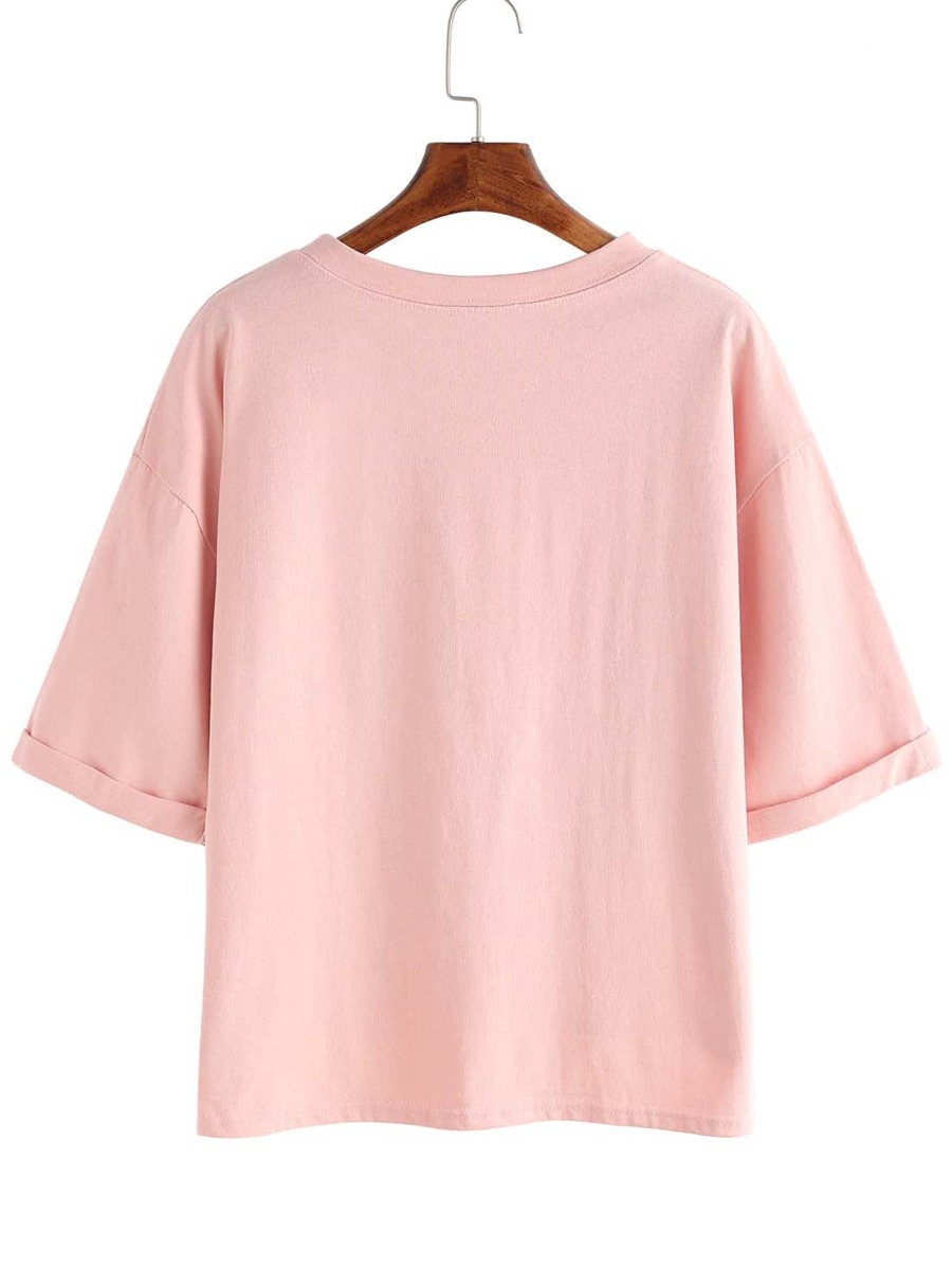 تي شيرت وردي بأطوال مختلفة مع جيب
