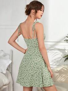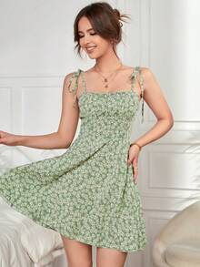 فستان كامي بطية صدر وطباعة زهور اقحوان