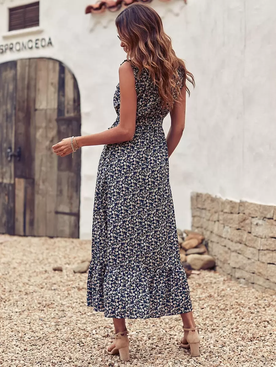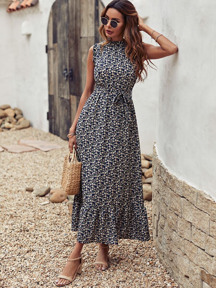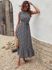فستان بحزام بحافة مشككش ومزهر اقحوان