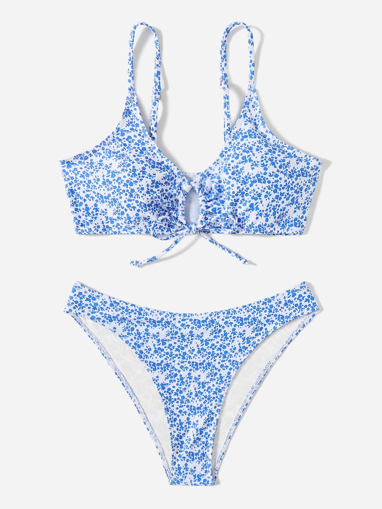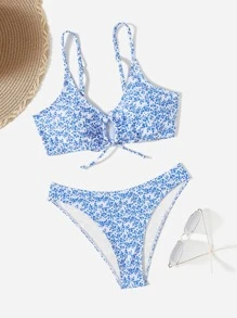 بيكيني من الأمام بربطة عنق على شكل زهور من Ditsy