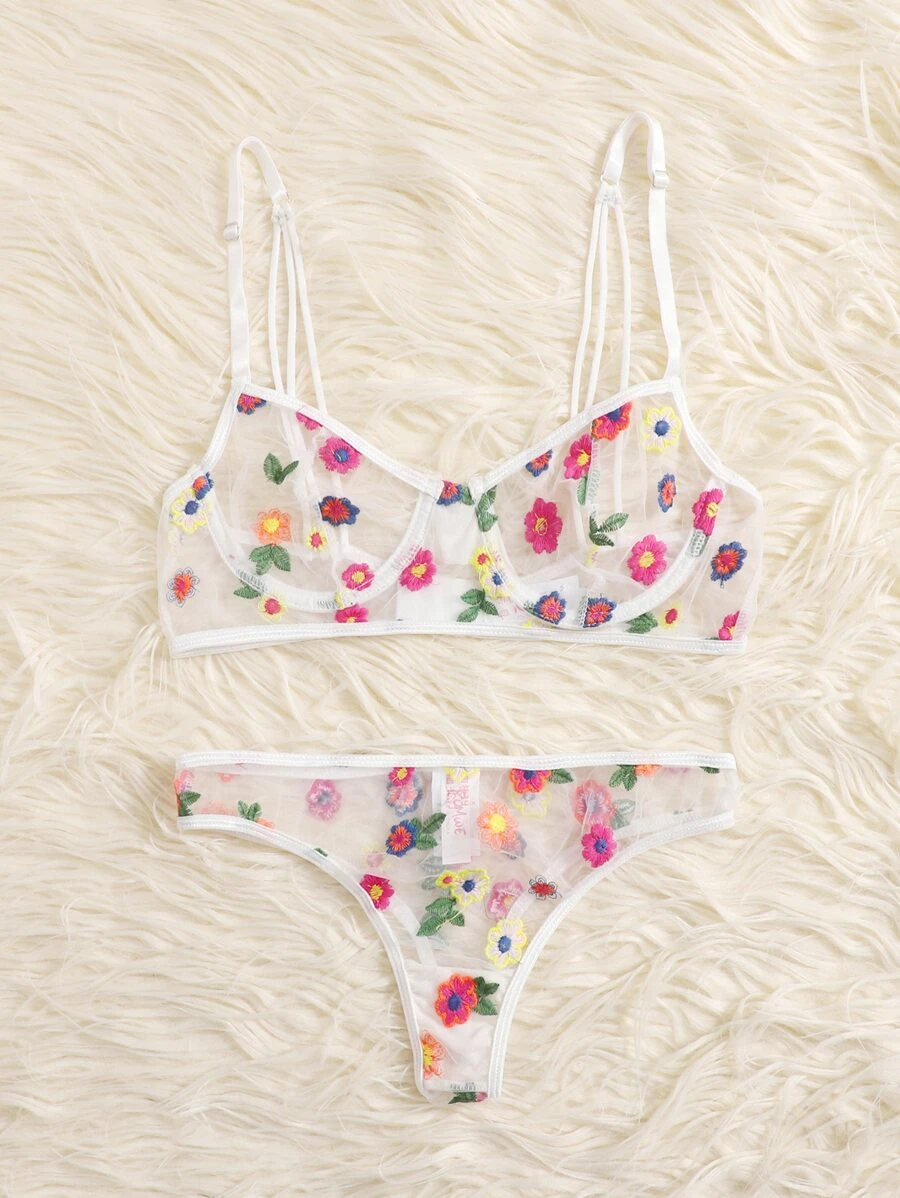 ملابس سكسي داخلية التطريز ازهار صغيرة جذابة