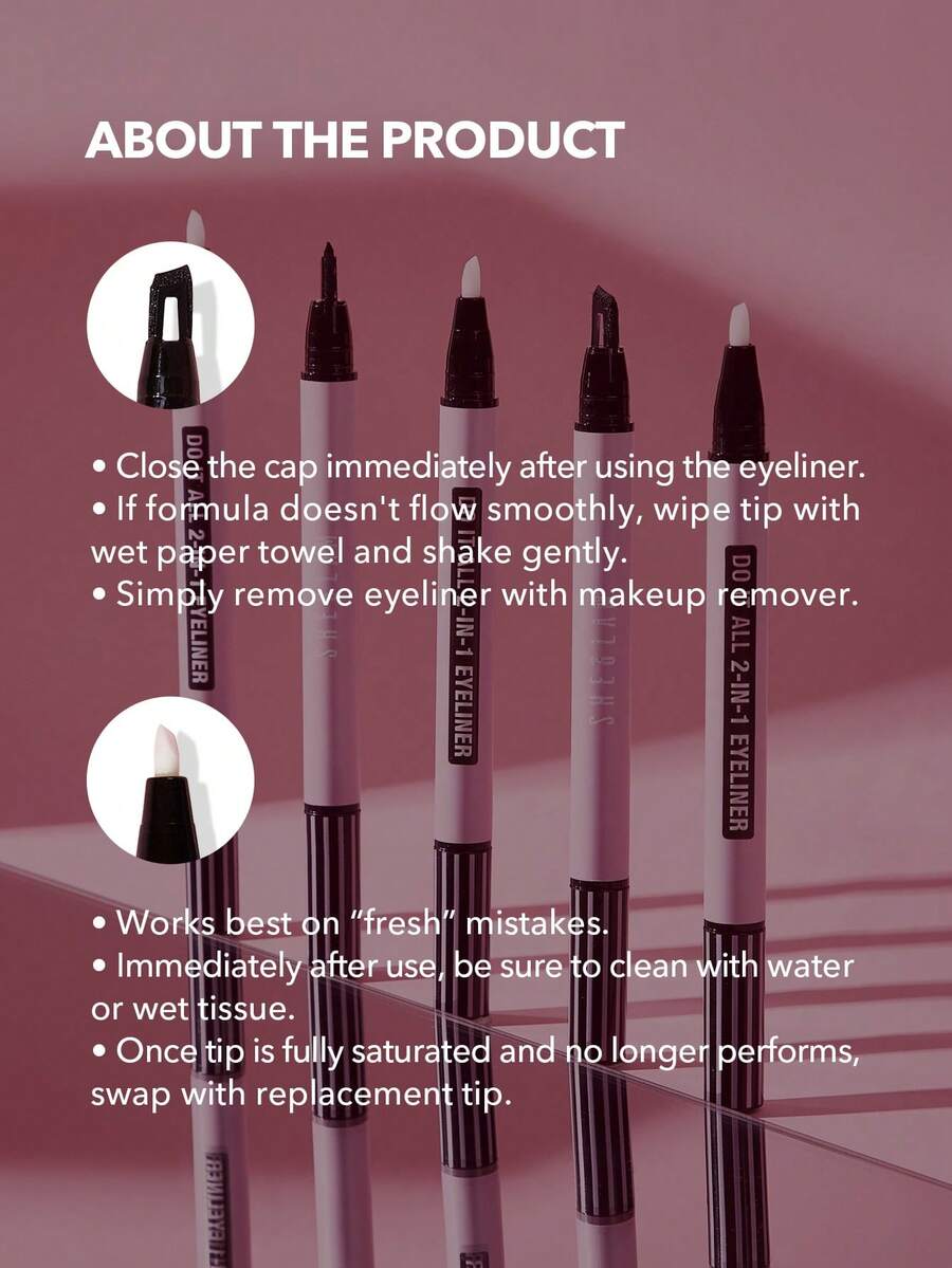 كحل Do It All 2-In-1 كحل مقاوم للماء غير لامع مع مزيل كحل مقاوم للعرق مقاوم للتلطخ سهل الاستخدام مناسب للمبتدئين كحل أسود كحلGothic علامة تجارية جمال مكياج مستحضرات تجميل للنساء الفتيات مثالي لفصل الخريف الشتاء مثالي ل- Y2K أزياء أنيقة هدية حفلة جاهز أفضل لون