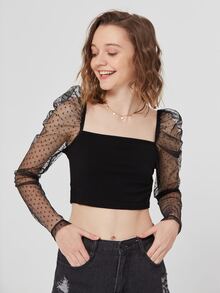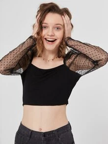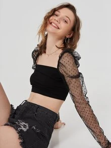 لباس علوي مقصوص باكمام نمط ساق الغنم شبكي شفاف