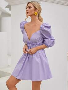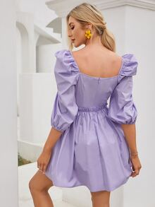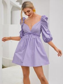 Double Crazy فستان مكشكش باكمام فانوس وبعنق عميق