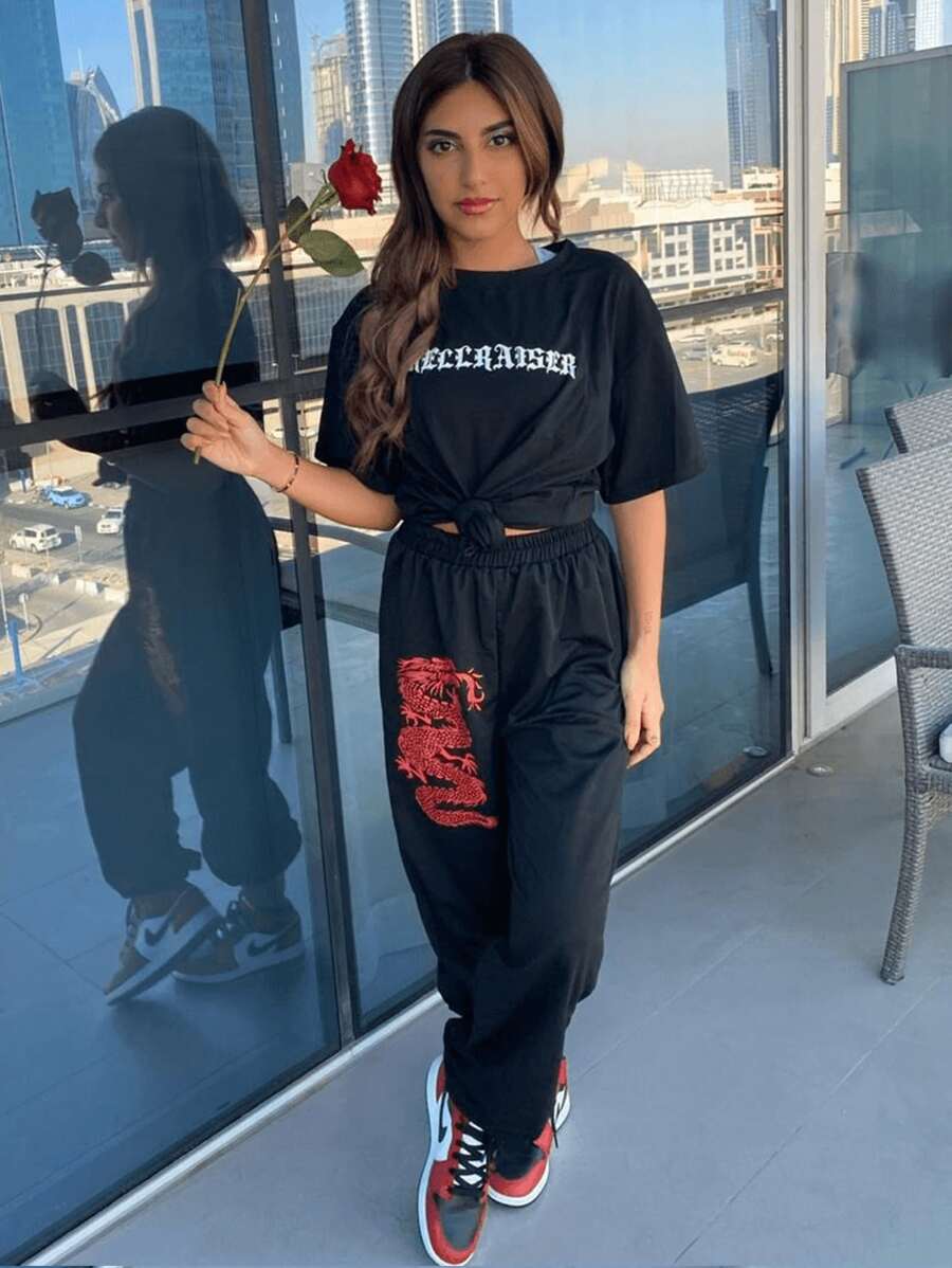 تي شيرت وبطباعة التنين والحروف