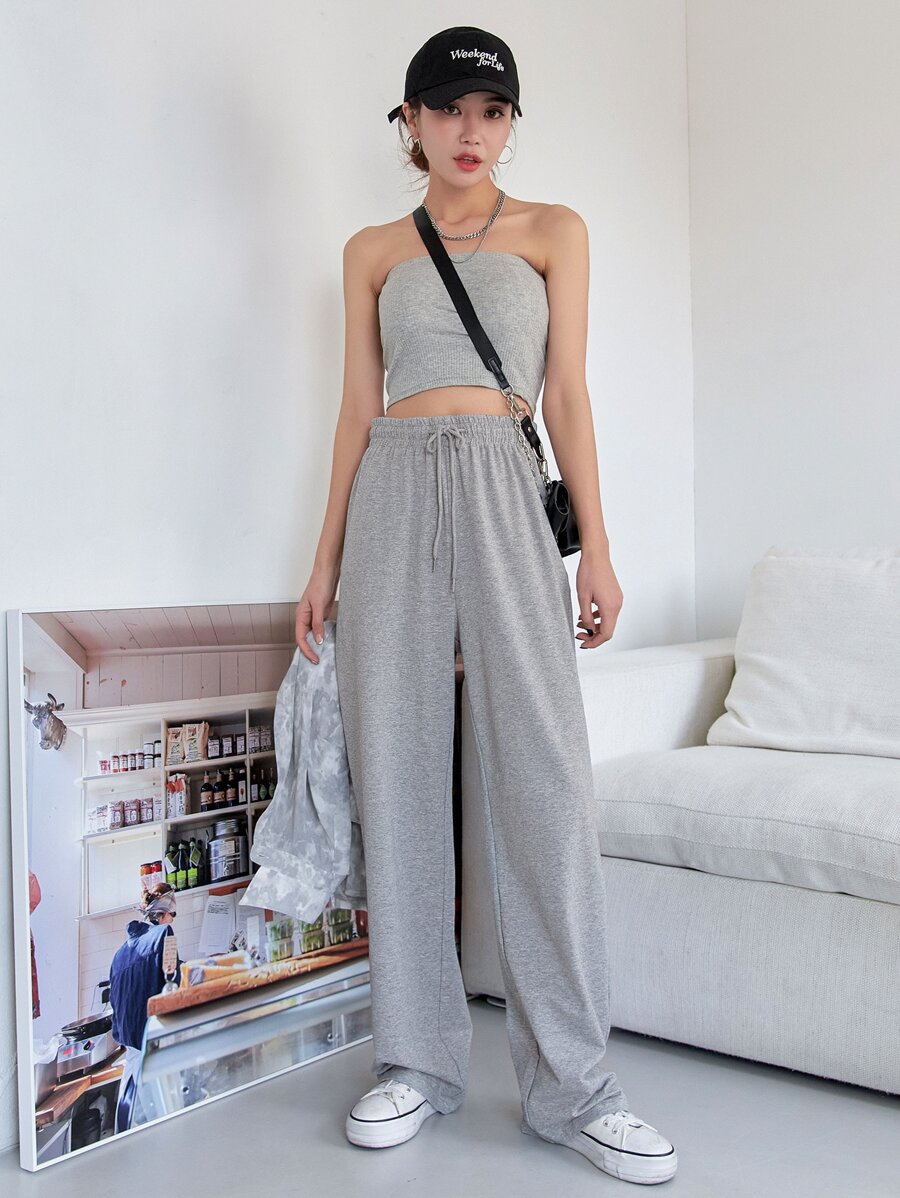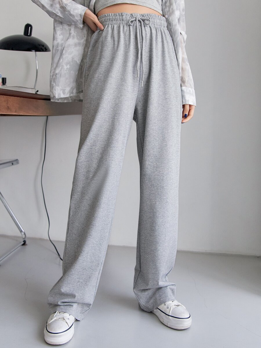 بنطلون رياضي مستقيم الساق مع خصر رباط، بنطلون جوجر للنساء في فصل الخريف